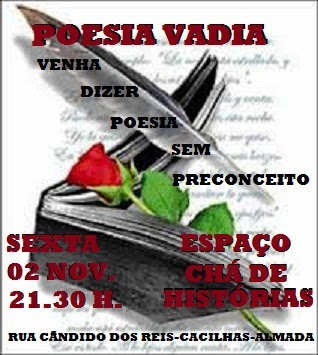 A segunda é, em Cacilhas... não de volta ao lugar onde tudo começou em 2003 mas num espaço especial na renovada Rua Cândido dos Reis: o Chá de Histórias, que nos abriu portas para ali realizar os nossos encontros poéticos, com a empenhada dinamização de António Boieiro, um dos primeiros impulsionadores deste projeto dos Poetas Almadenses desde 2003. Será no dia 2 de Novembro (sexta-feira), a partir das 21:30h.